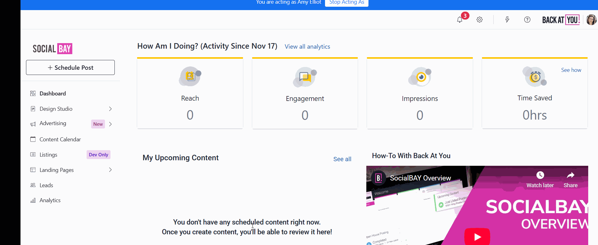 It's very easy to schedule and post your listings through SocialBAY. Select your Listings tab on the left hand side navigation menu where we house all of your listings. Find the listing you want to post out and select Schedule a Listing Post. Select ...